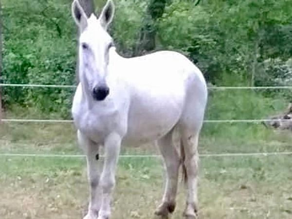 Angel is the gentle giant at the farm. Her big mule ears and unique sound grabs everyone's attention. She is super laid back and requires someone who isn't afraid to kick, to get her to move. She also has a nice lope and great, sturdy feet on the trail.