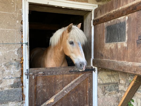 King is a Halflinger horse and gets a lot of attention at the farm. He has a puppy dog personality and loves people. He is the perfect size for a medium to small rider, and he is very patient with beginners. He also has a go button and is great for someone looking to gain more experience as an advanced rider.